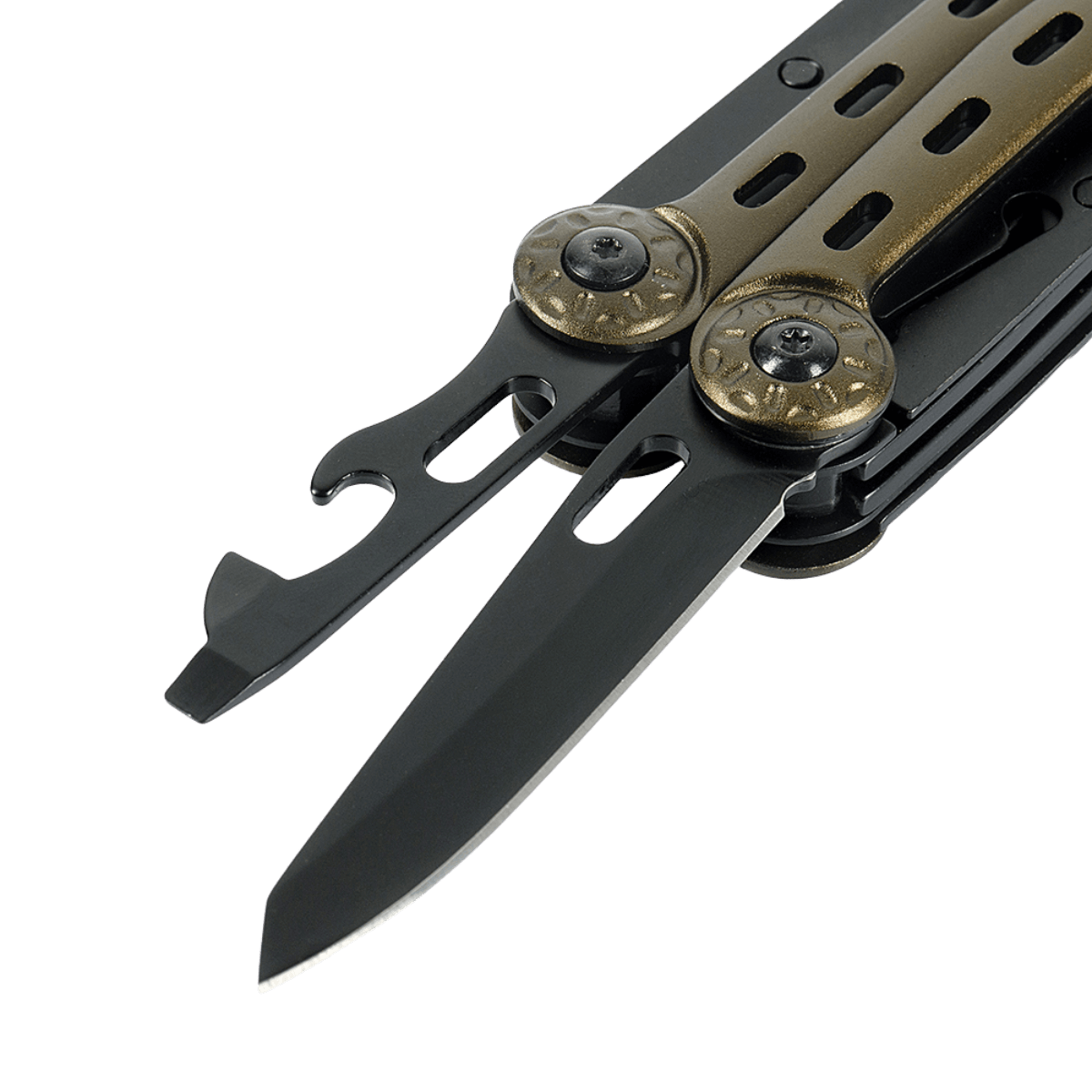 Multiverktøyet er laget av 402 rustfritt stål, noe som sikrer maksimal holdbarhet, selv ved aktiv bruk i felt.