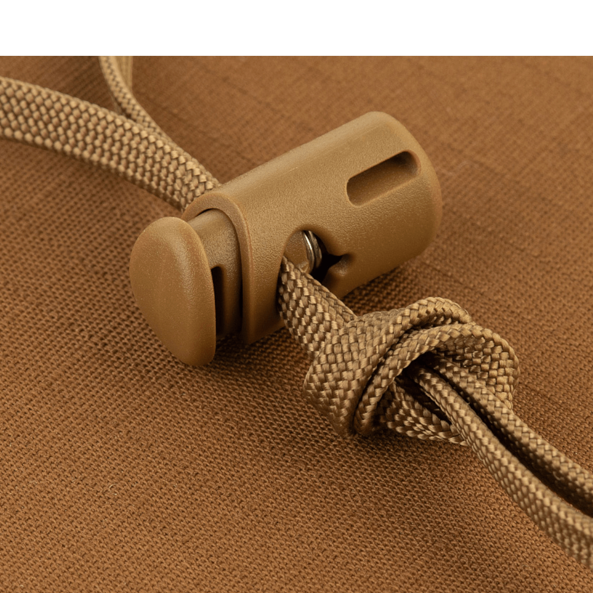Funktioner: Kort semi-rigid skygge, MOLLE-interface til ekstra kamuflage, speciel snor mod vind