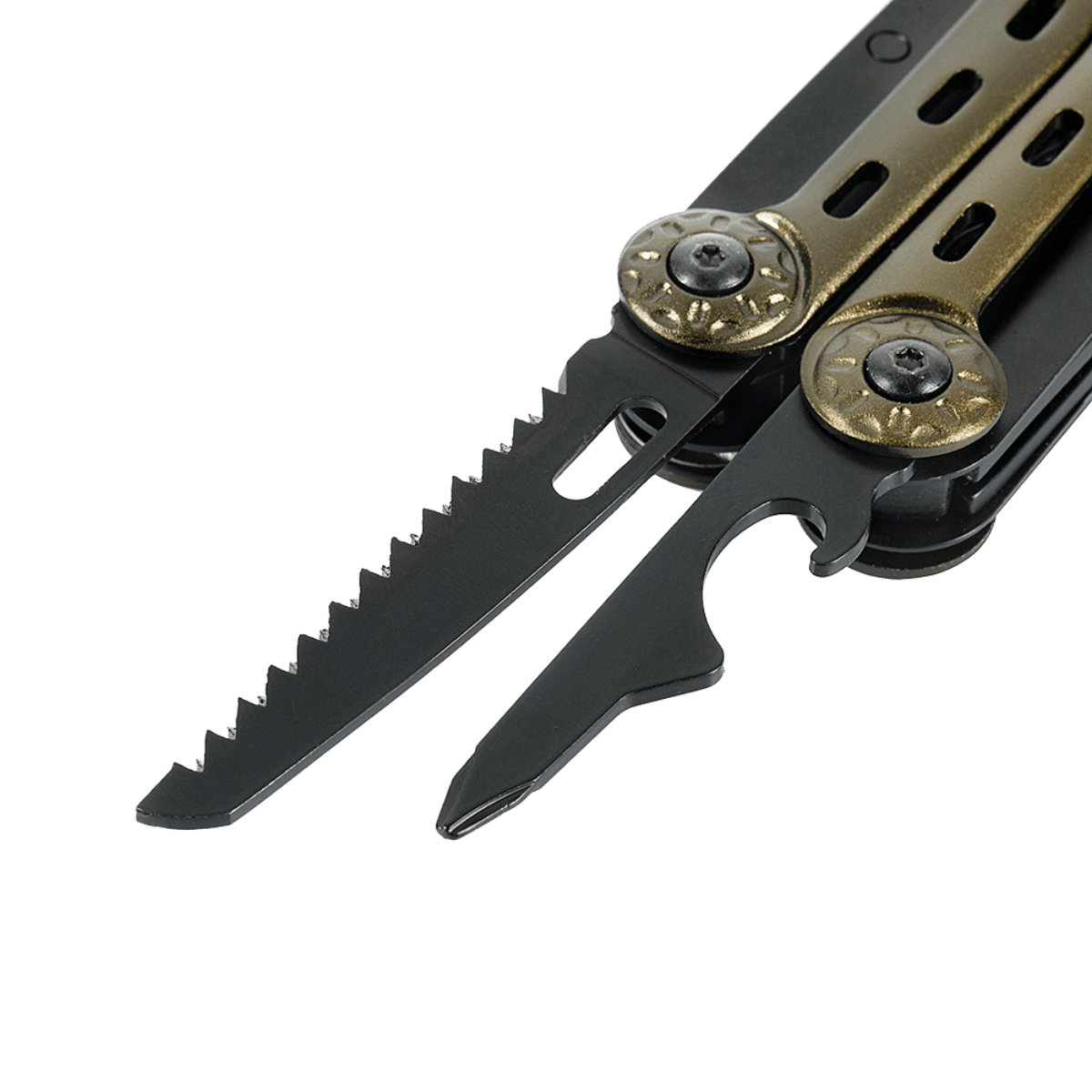 Multiverktøyet er laget av 402 rustfritt stål, noe som sikrer maksimal holdbarhet, selv ved aktiv bruk ute i felt.