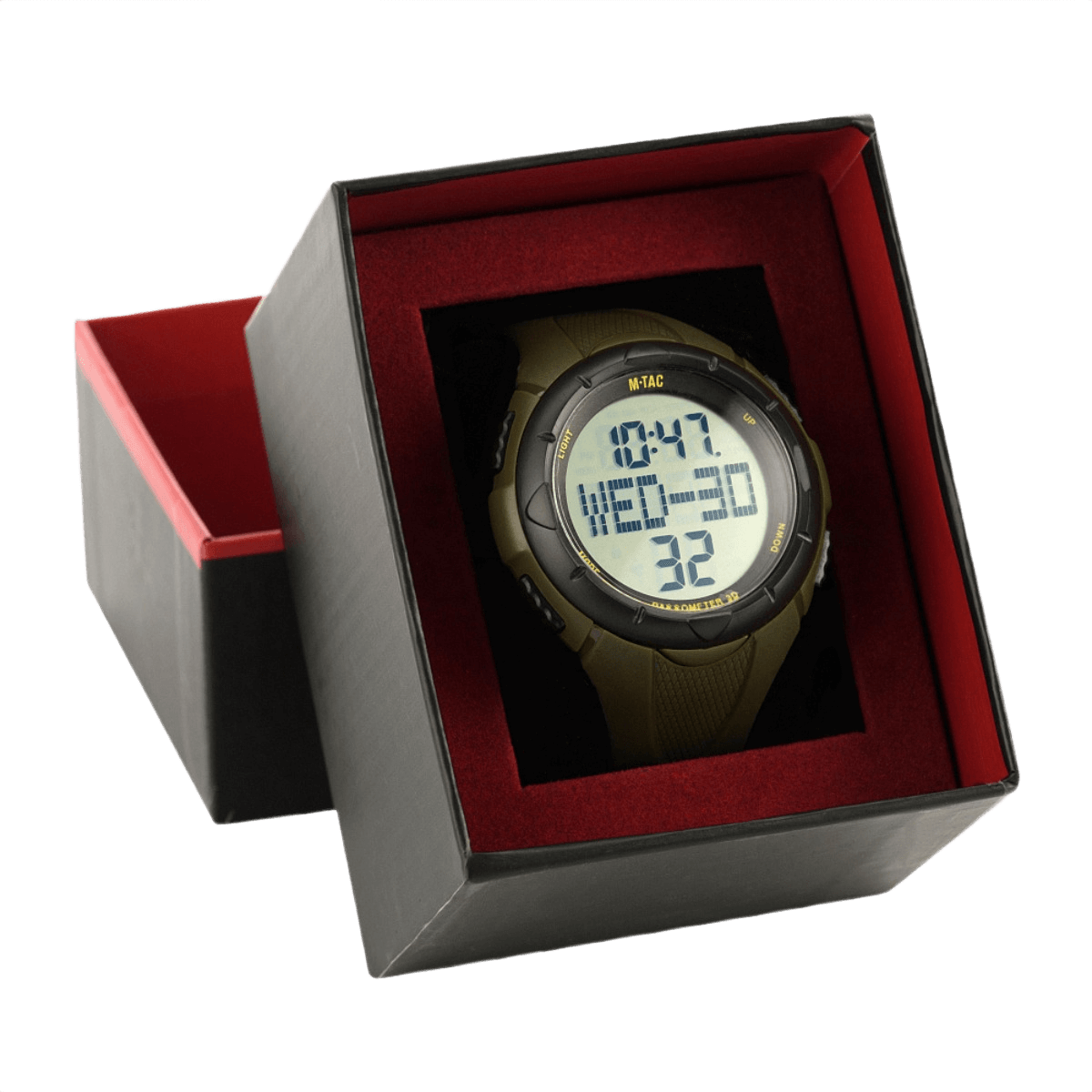 M‑Tac Taktisk Klokke med Skrittteller er perfekt til sport og utendørs aktiviteter. Klokken har mange funksjoner som hjelper med å holde oversikt over trening og daglige gjøremål.