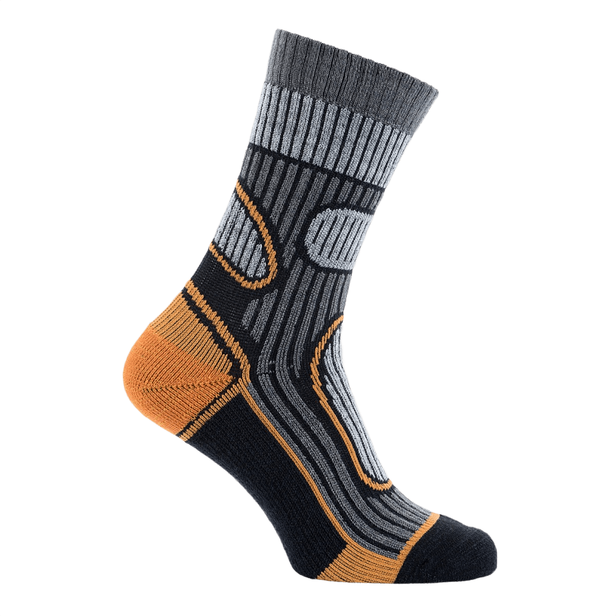 Merinoull gir utmerket termisk isolasjon og fuktighetskontroll, mens akryl forsterker de mest utsatte områdene og gir ekstra isolasjon. Nylon øker slitestyrken, og elastan sikrer tett passform.