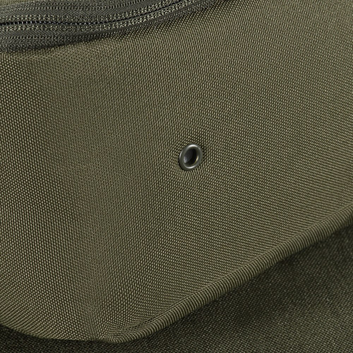 Tasken er lavet af 600D polyester med PVC-belægning, som gør den vandafvisende, slidstærk og formstabil. Den gummibelagte inderside og PVC-laget sikrer høj holdbarhed og beskyttelse af indholdet, selv under rejse eller udendørs aktiviteter.