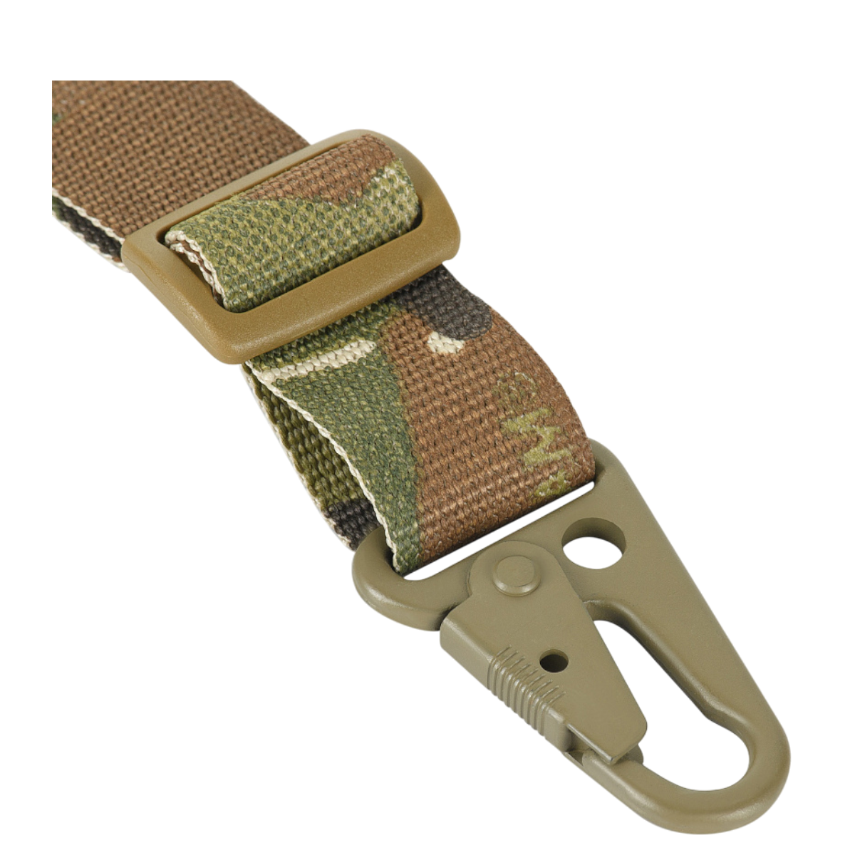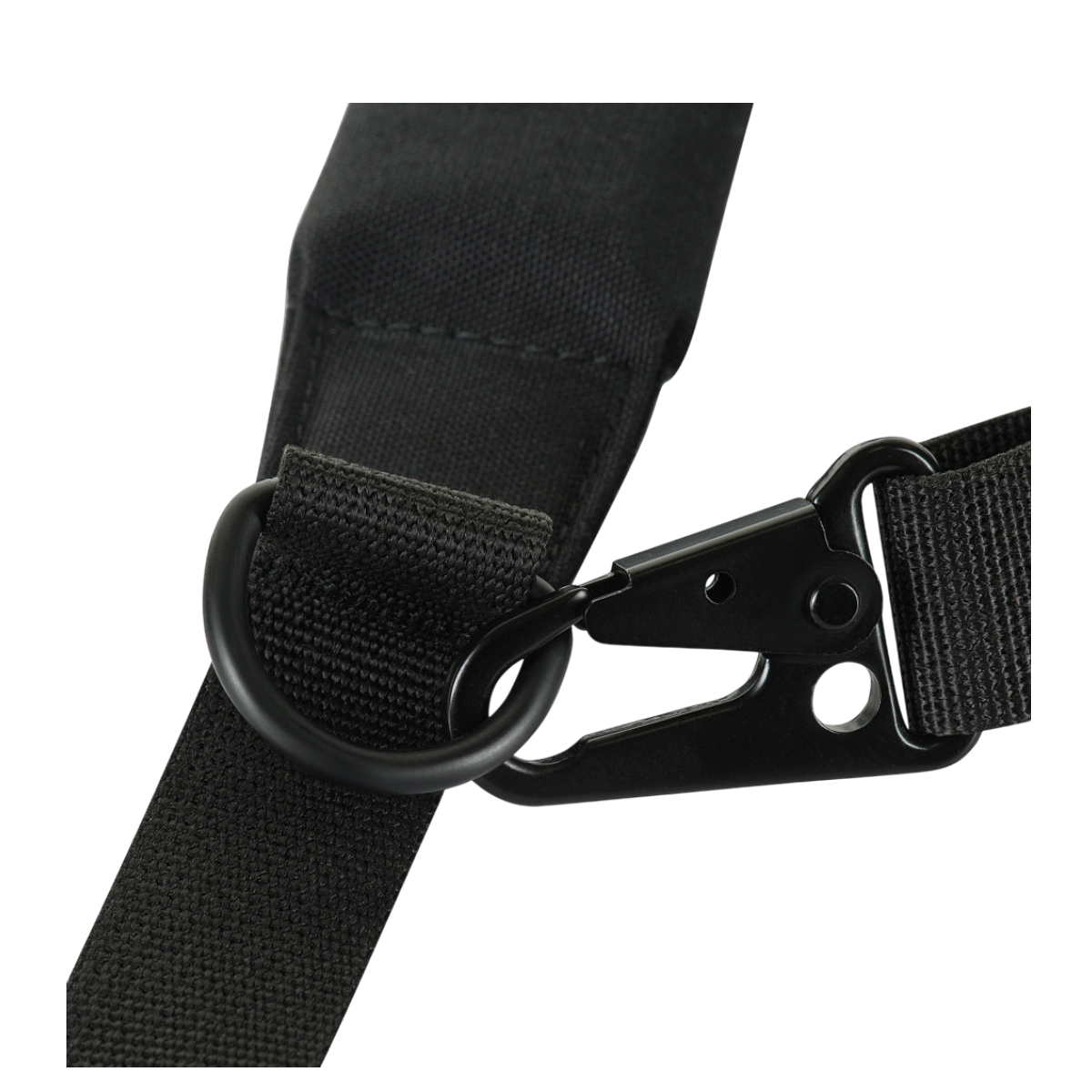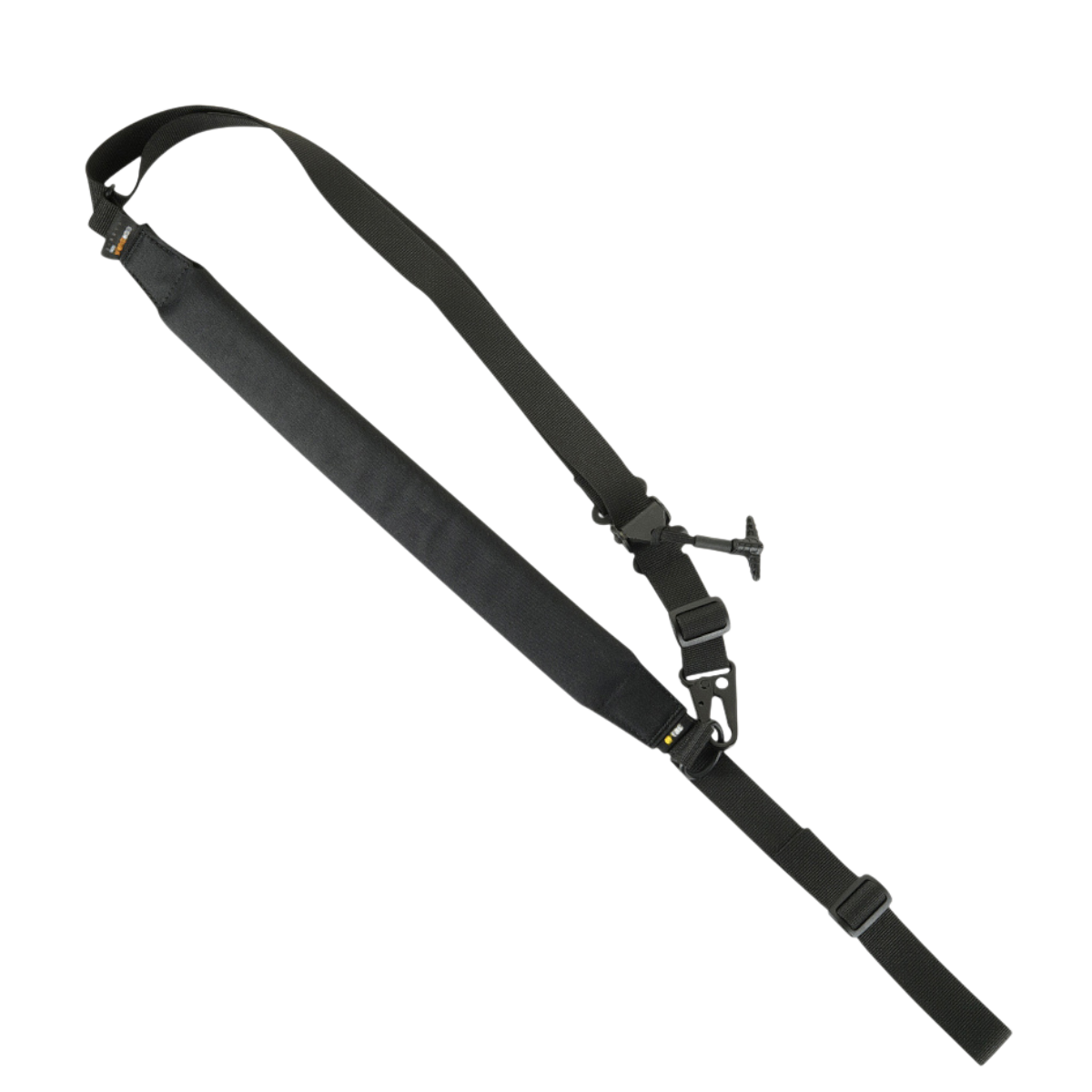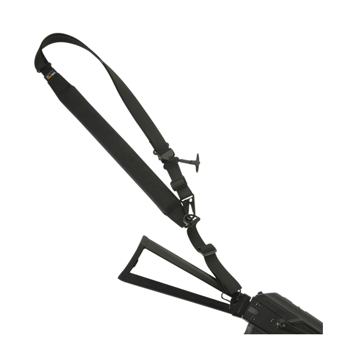 En innovativ metallspenne med T-formet håndtak sikrer rask justering av belteslengden. Beltet er laget av høykvalitets amerikansk Texcel-webbing, produsert etter US Army-standarder. En myk skulderpute i Cordura 500D forhindrer gnaging og trykk ved lengre tids bæring av våpenet.