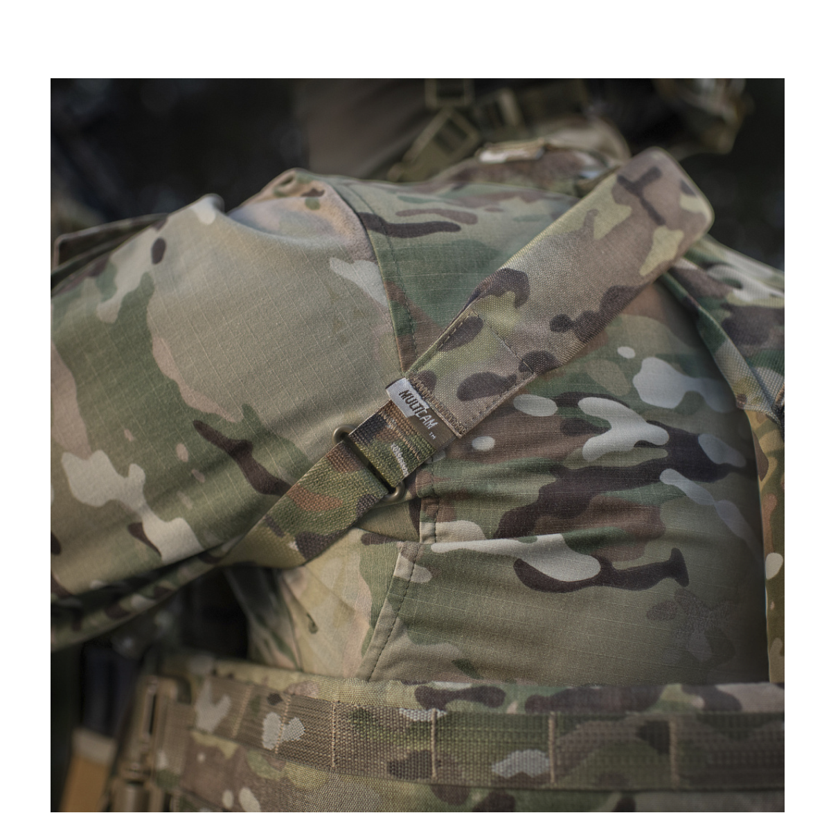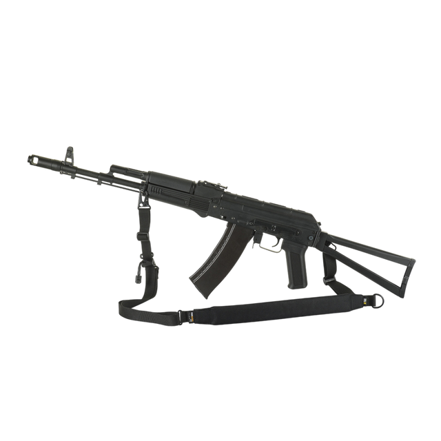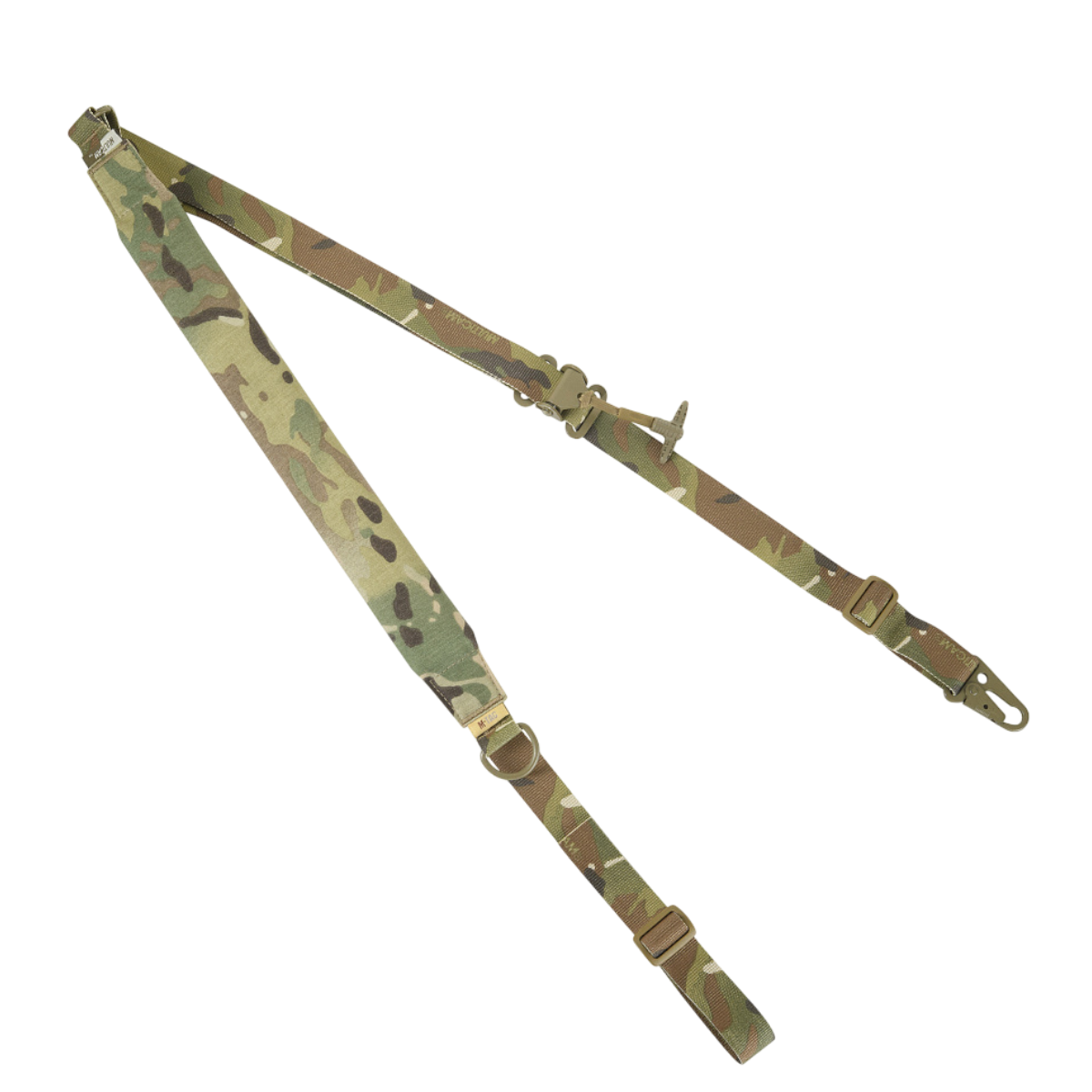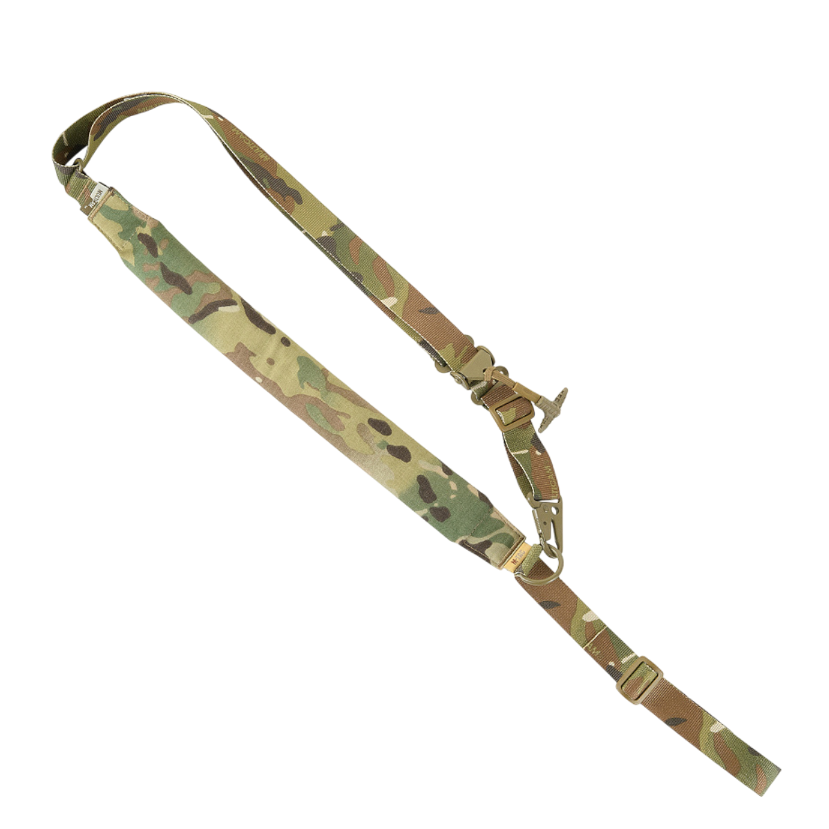En innovativ metallspenne med T-formet håndtak sikrer rask justering av belteslengden. Beltet er laget av høykvalitets amerikansk Texcel-webbing, produsert etter US Army-standarder. En myk skulderpute i Cordura 500D forhindrer gnaging og trykk ved lengre tids bæring av våpenet.