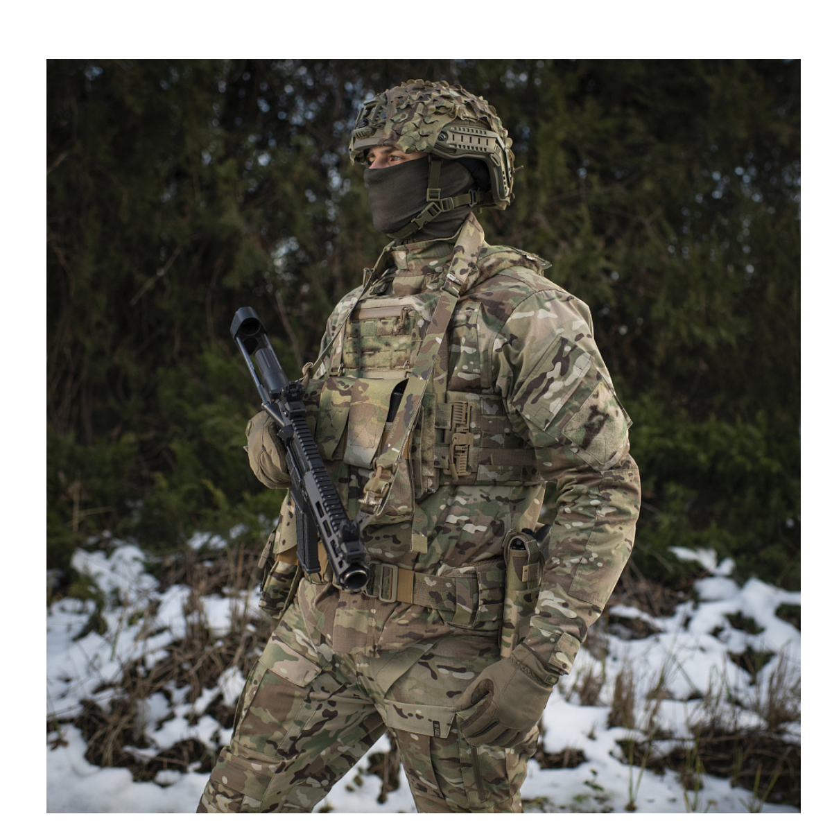 Denne utrustningen kan brukes under intensive ildkontakter, patruljer eller arbeid ved checkpoints. Det multifunksjonelle våpenbeltet gjør det mulig å bringe våpenet i en komfortabel skytestilling på få sekunder.