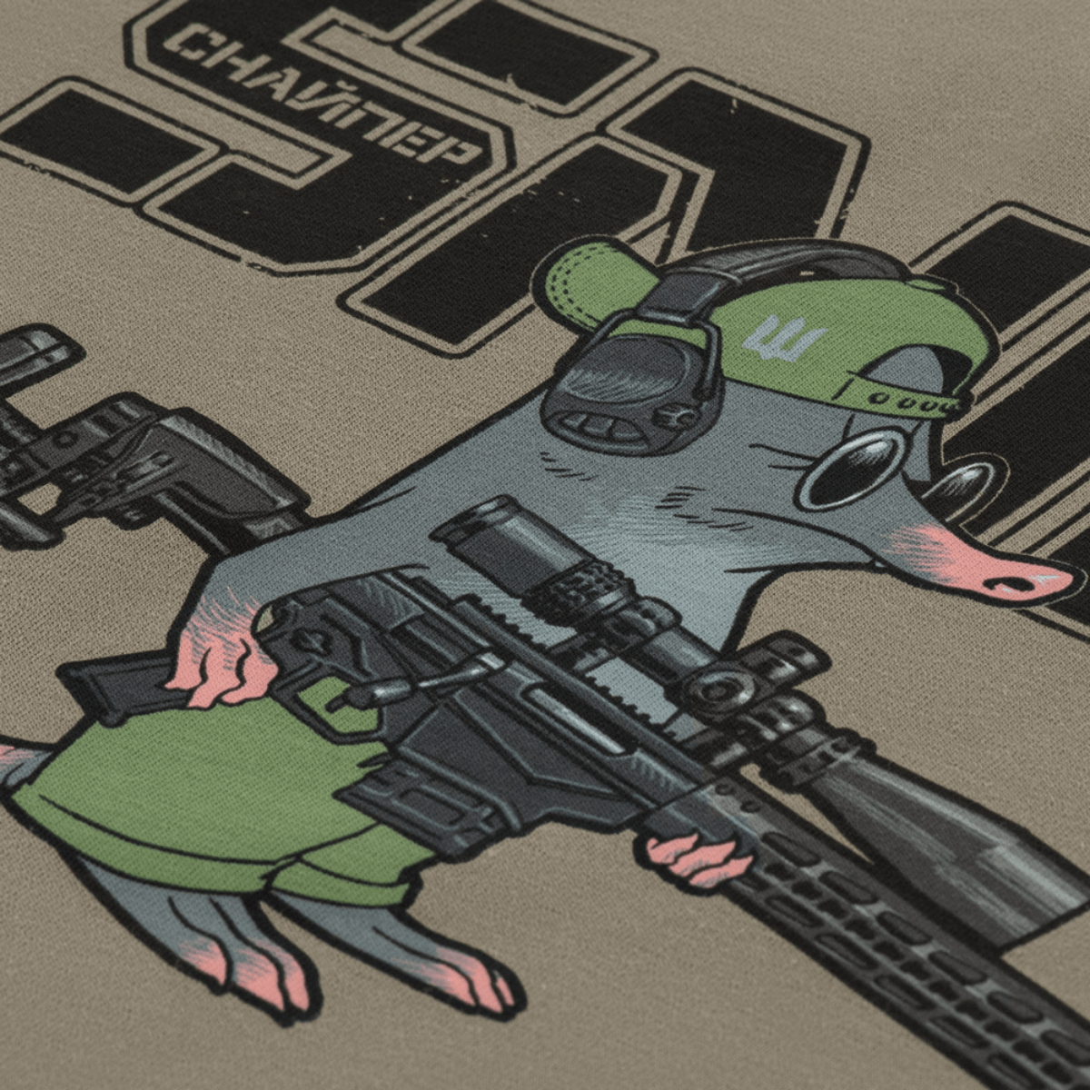M-Tac T-Shirt Talpa hylder snigskytter med humoristisk twist. Printet viser en blind muldvarp som sniper – hans manglende syn hindrer ikke ambition og præcision. På ryggen symboliserer briller og patronhylstre dedikation og målrettethed.