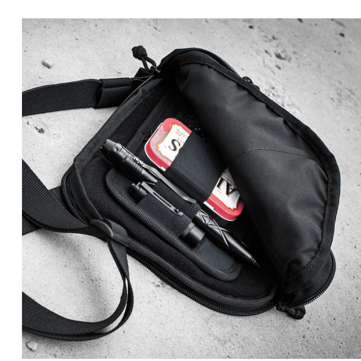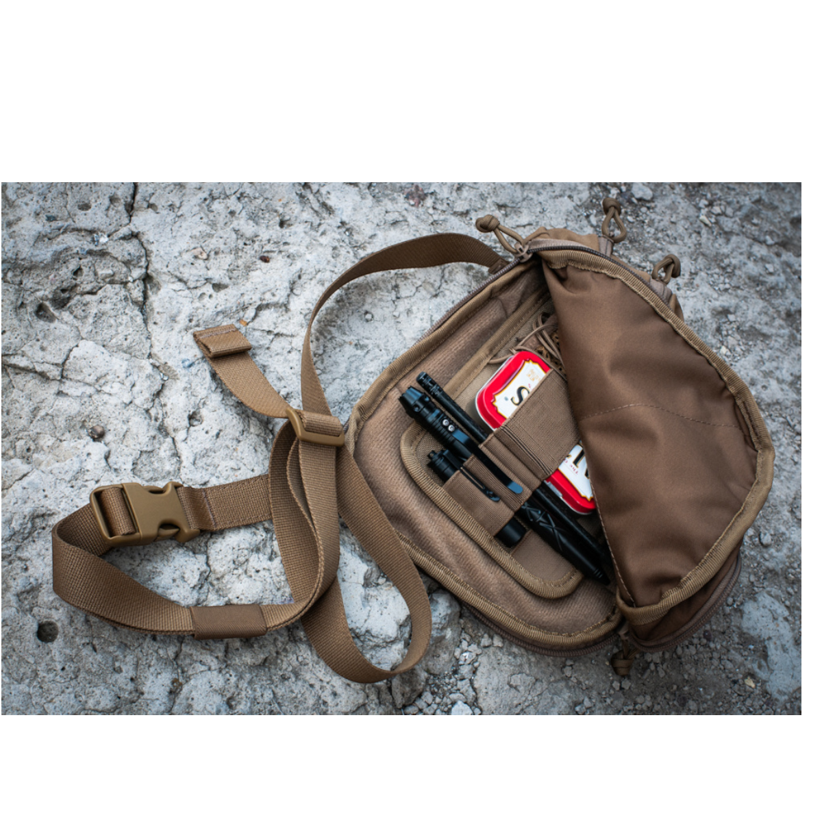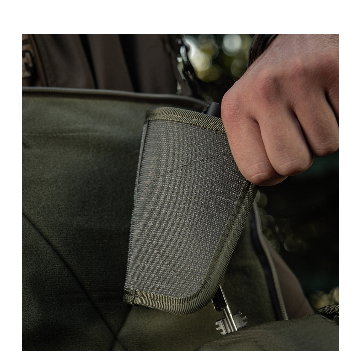Organizeren er udstyret med elastiske fastgøringer til taktisk pen, lommelygte, nøglekæde, multitool, kniv, telefon og andre nyttige gadgets – ideelt til transport af dit EDC-udstyr. Modulet har også en indbygget nøglering for ekstra funktionalitet.