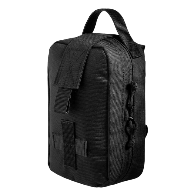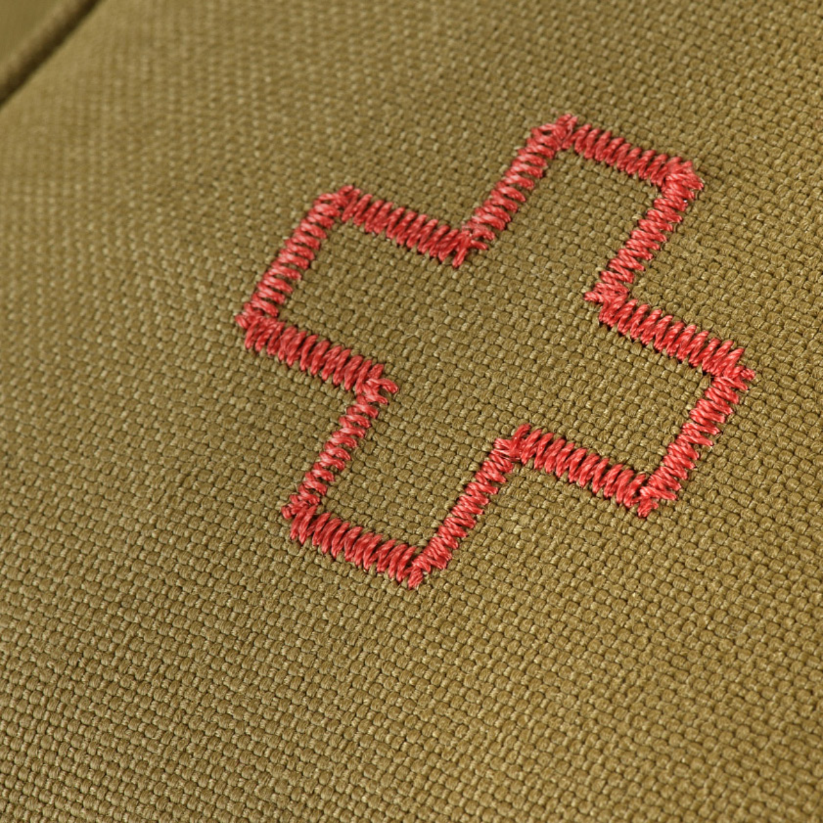 Hovedrommet lukkes med en robust glidelås, som sikrer sikker oppbevaring av medisinsk utstyr. Vesken sitt modulære design gjør den kompatibel med alle MOLLE-systemer og gir fleksibilitet i taktiske situasjoner.