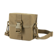 Vesken kan monteres på MOLLE-plattformer eller bæres crossbody/over skulderen med den avtakbare remmen, noe som gir fleksibel og komfortabel bruk.
