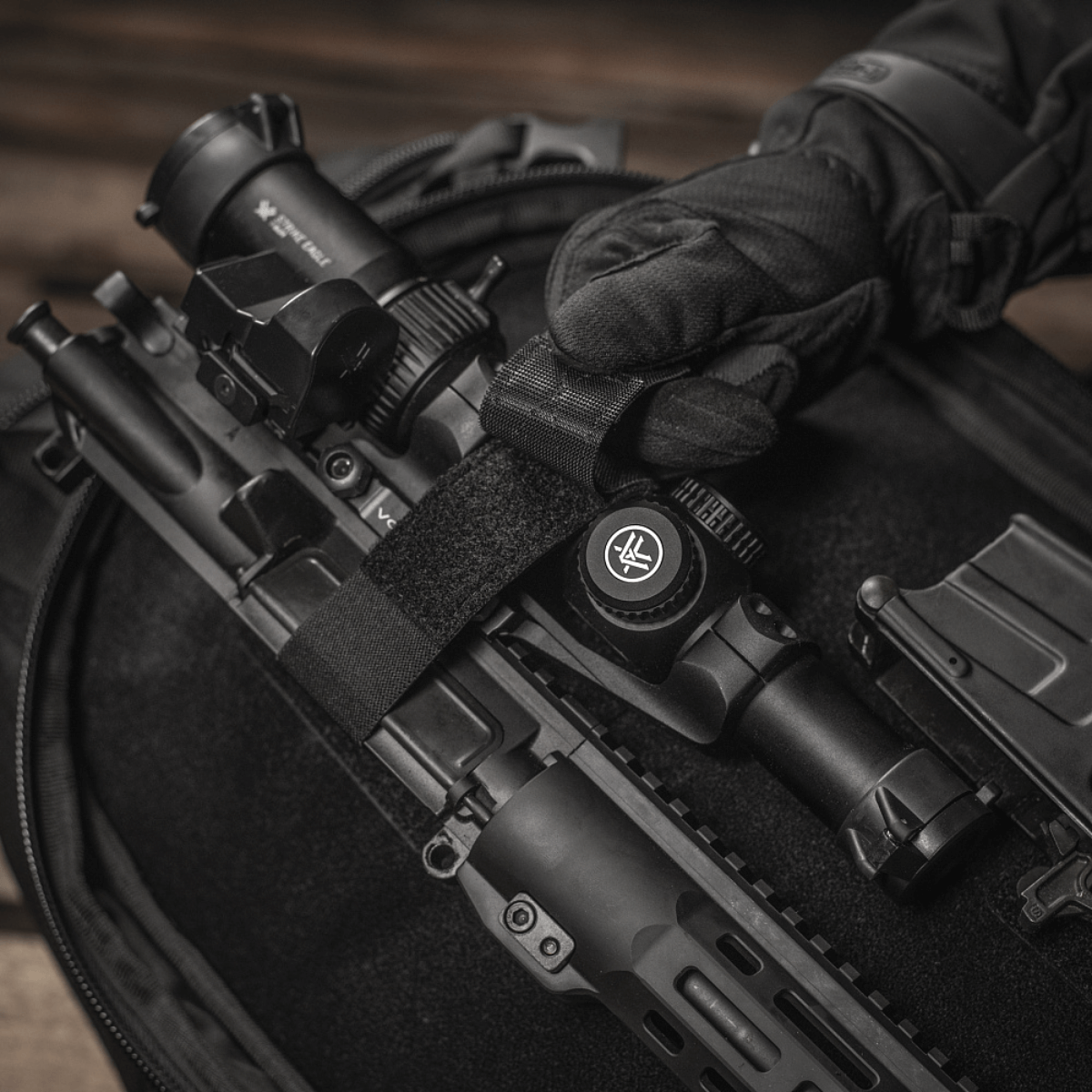 En robust og fleksibel løsning for dem som vil sikre og organisere våpen og utstyr i kasser og ryggsekker.