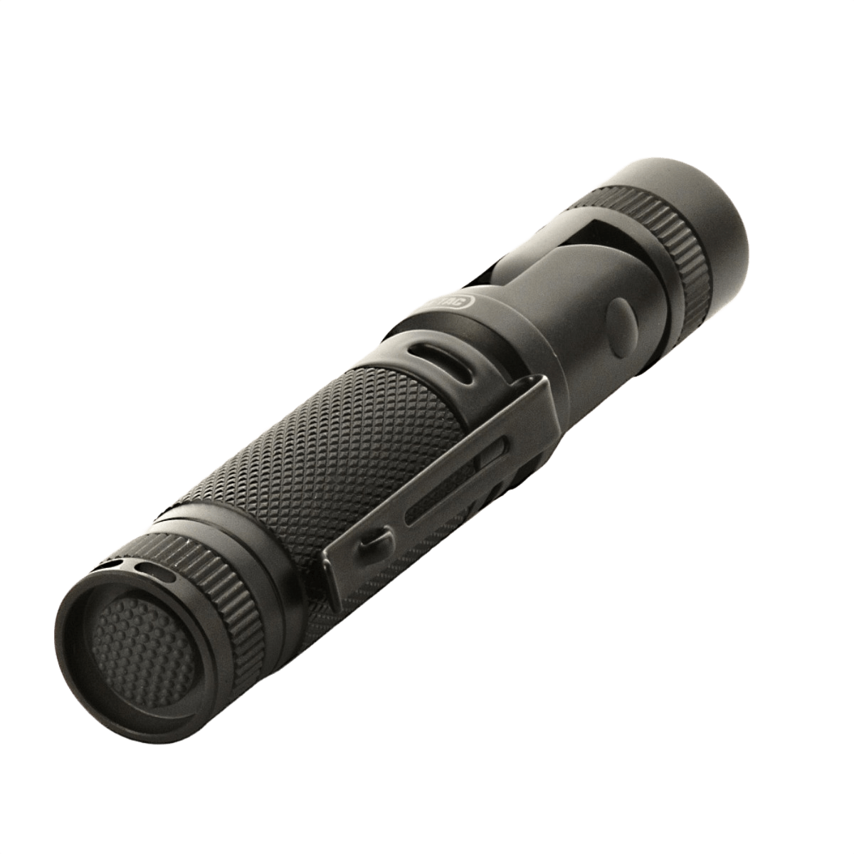 M-Tac Lommelygte P180 kombinerer originalt design med praktisk funktionalitet. Lysretningen kan justeres frit, hvilket gør det nemt at hænge lommelygten på brystlomme eller rygsæk og holde hænderne fri.