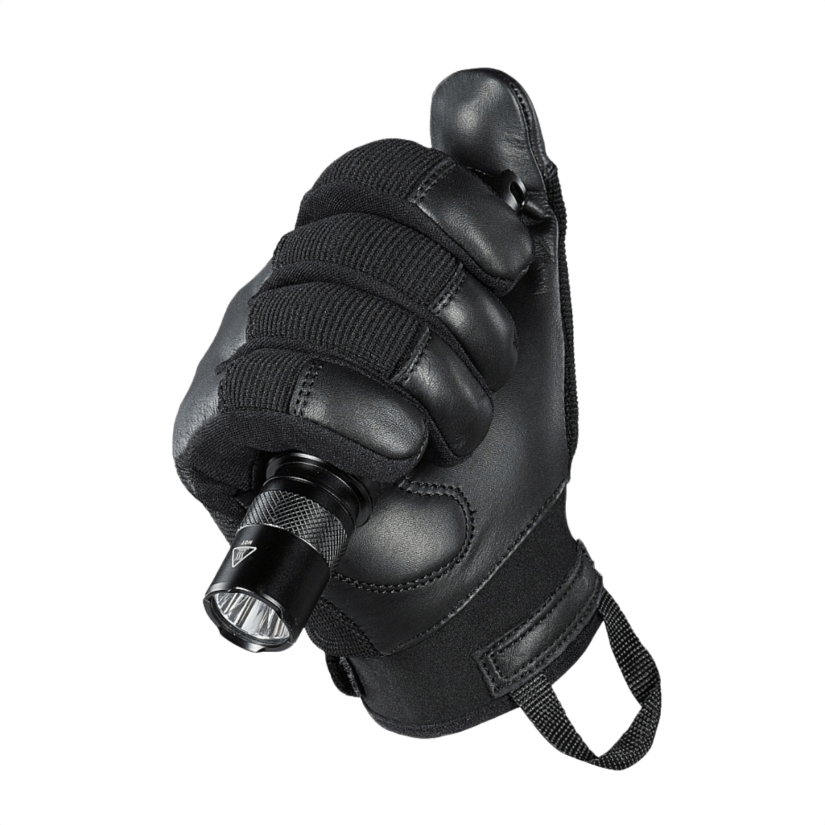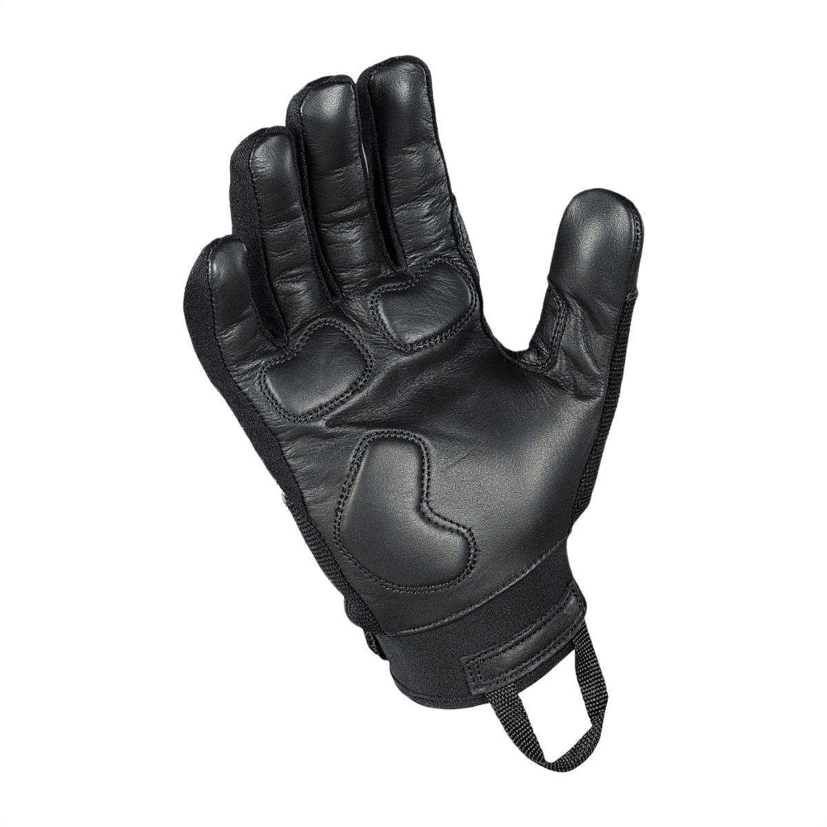 Håndflatene er polstret for ekstra komfort, og den sklisikre innsiden sikrer et trygt grep om våpen og nødvendige gjenstander. Justerbare rundt håndleddet med borrelås. Baksiden har en forsterket løkke for feste på utstyr.