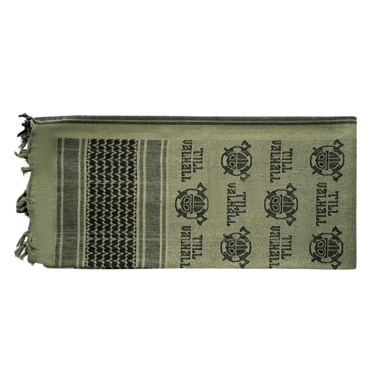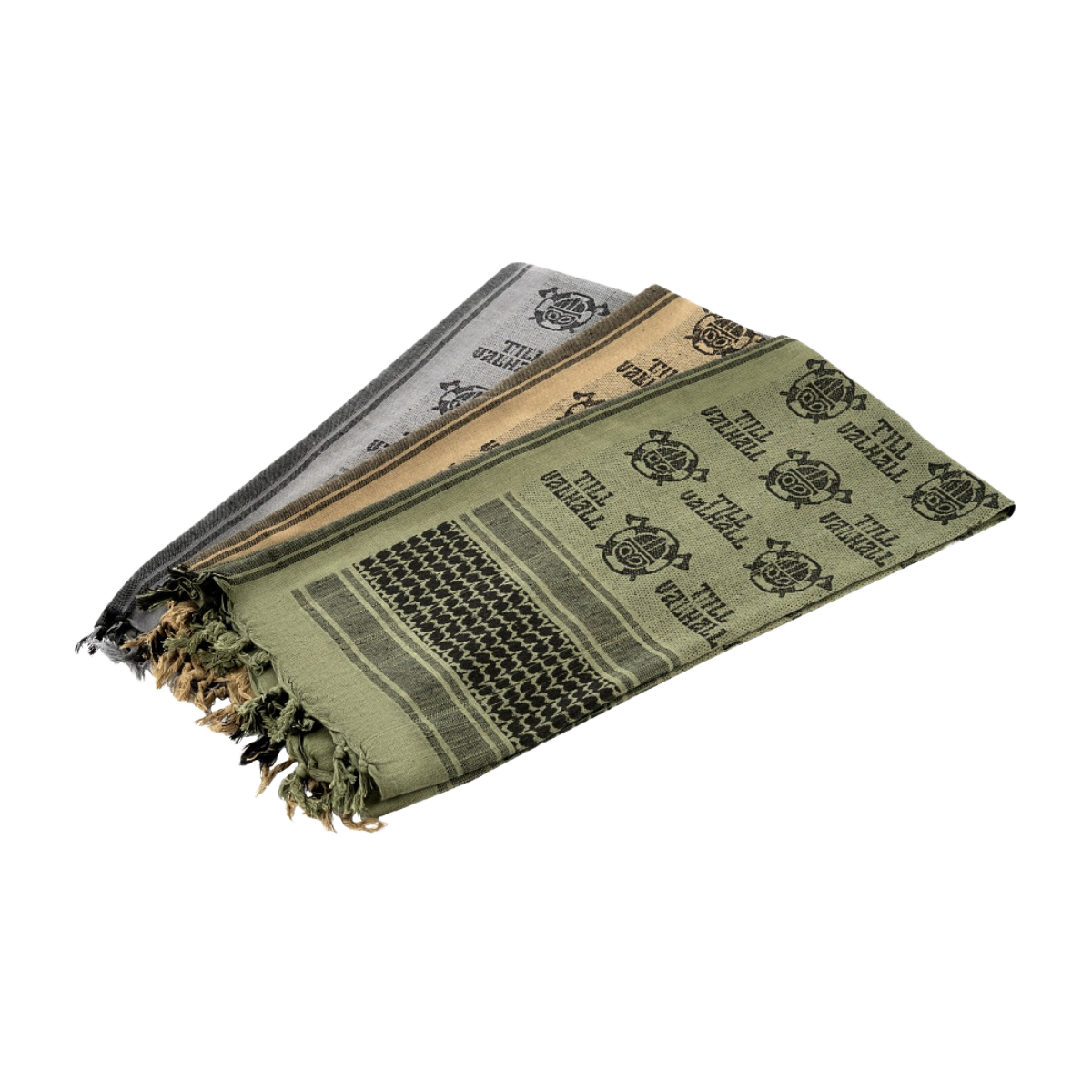 M-Tac Shemagh Tørklæde Til Valhall er et taktisk tørklæde inspireret af den norske "Til Valhall"-slogan. Det beskytter hoved og hals mod sol, sand og vind.
