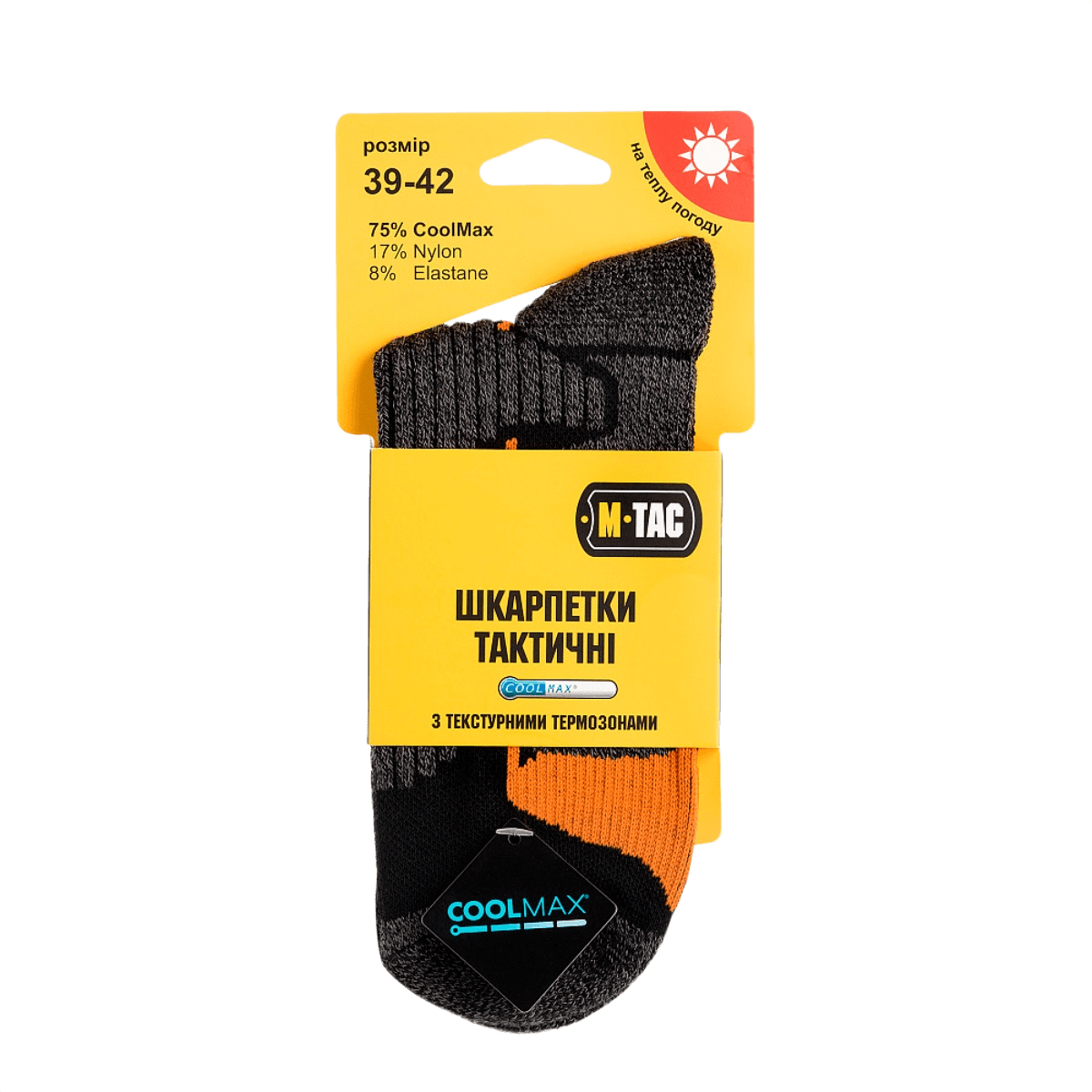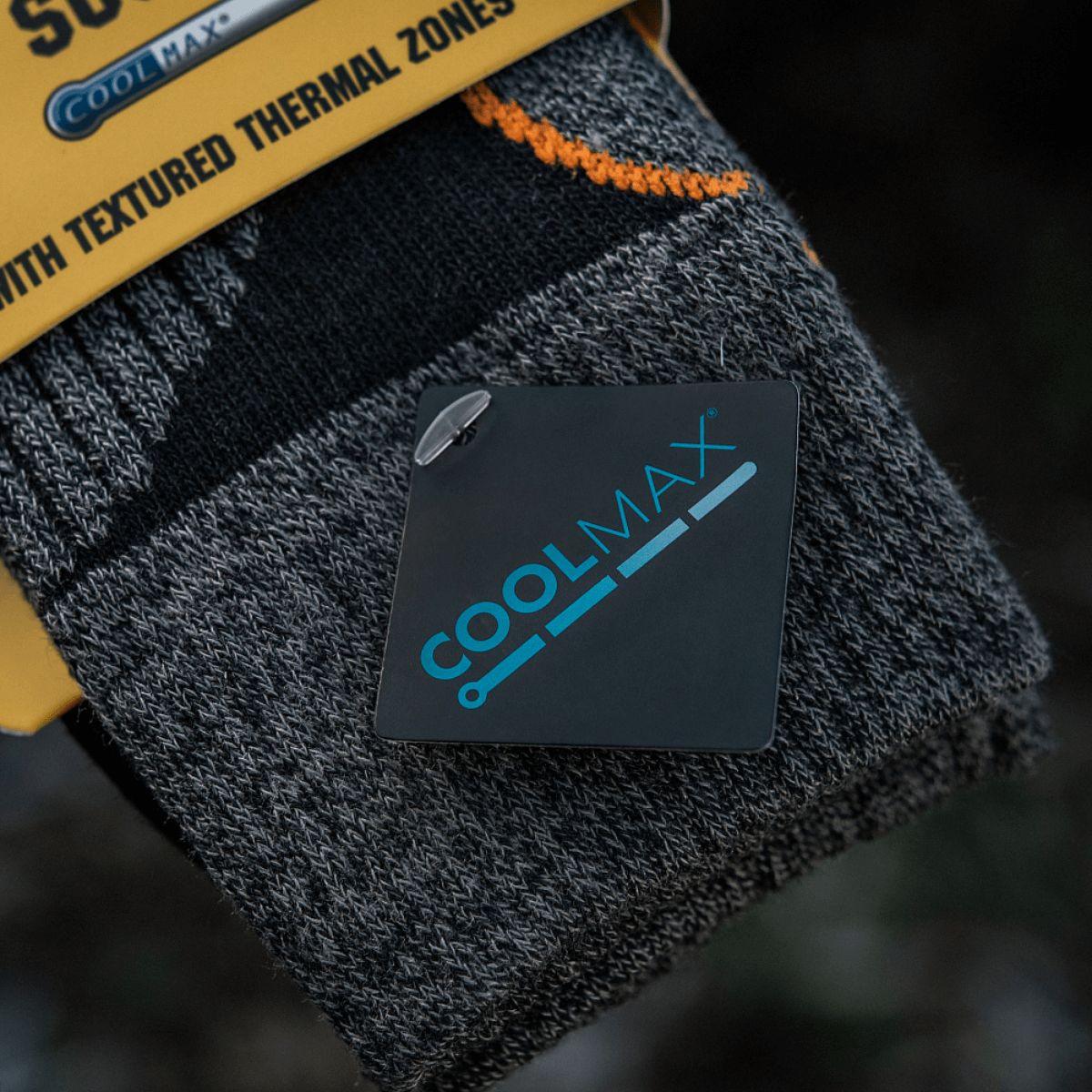 M-Tac Coolmax 75% sokker er klassiske OUTDOOR-sokker utviklet etter kroppens anatomi for å sikre optimal bevegelsesfrihet og komfort. Det primære materialet, Coolmax®, leder fukt bort fra huden og hjelper den med å fordampe raskt, slik at føttene forblir tørre – selv ved intens aktivitet.